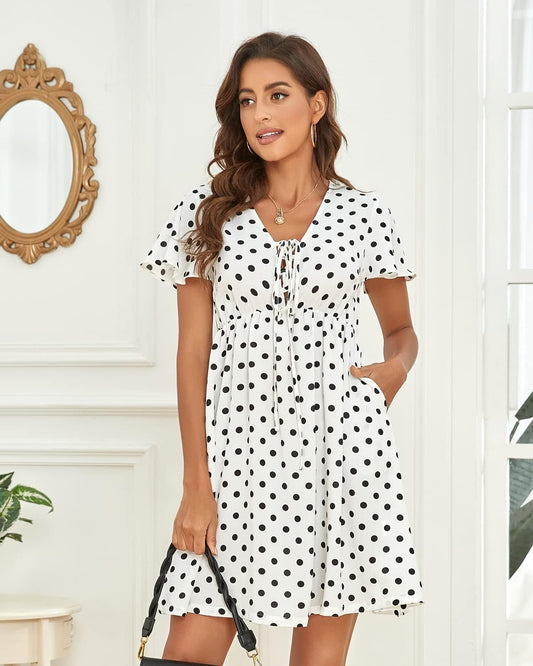 Women'S Summer Smocked Midi Dress Ditsy Floral Print Casual a Line Square Neck Short Puff Sleeve Dress